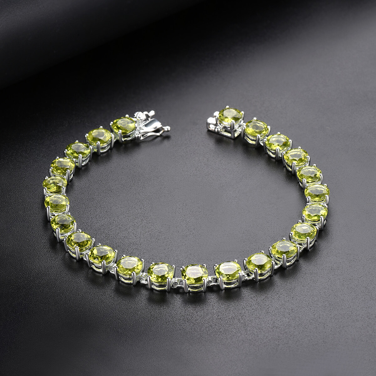 Natural Peridot 21.41Ct Gemstone Solid 925 Sterling Silver Chain Bracelet 7.25 Inch for Women Round 6mm Gemstone Fine Jewelry