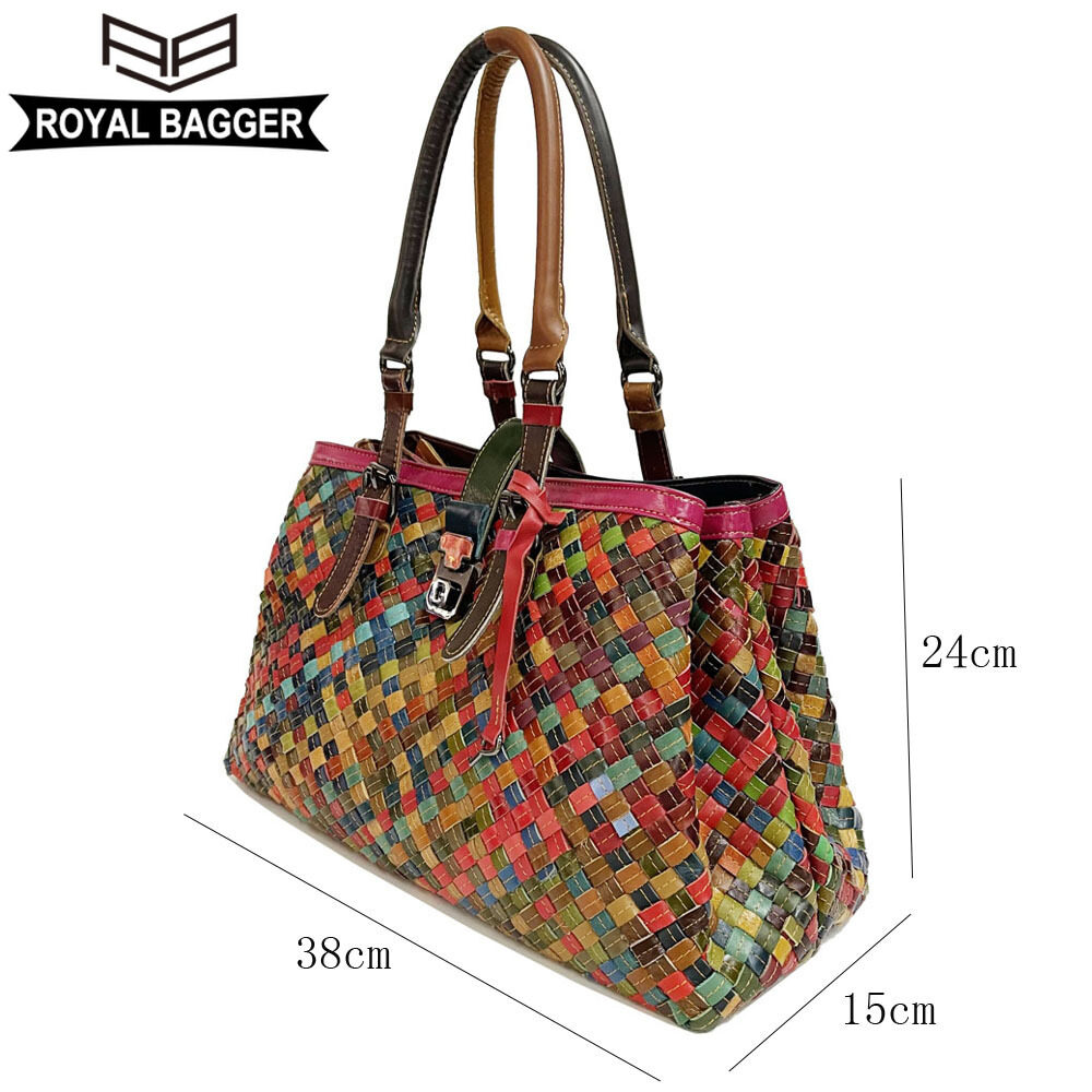 Royal Bagger New Top-Handle Bags for Women Genuine Leather Casual Retro Ladies Tote Bags Large Capacity Weave Girl Shoulder Bags
