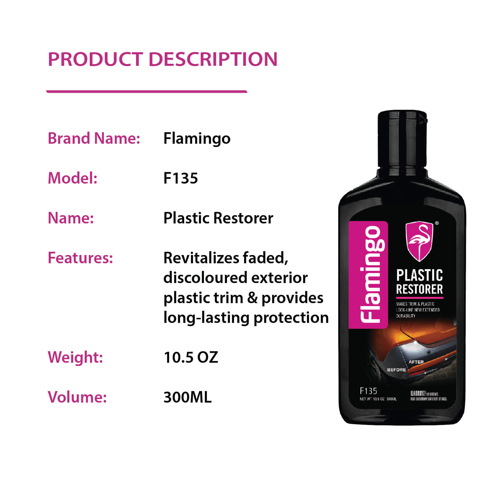 Flamingo Plastic Restorer 300ML Car Care Exterior Plastic Trim Restorer Cleaner