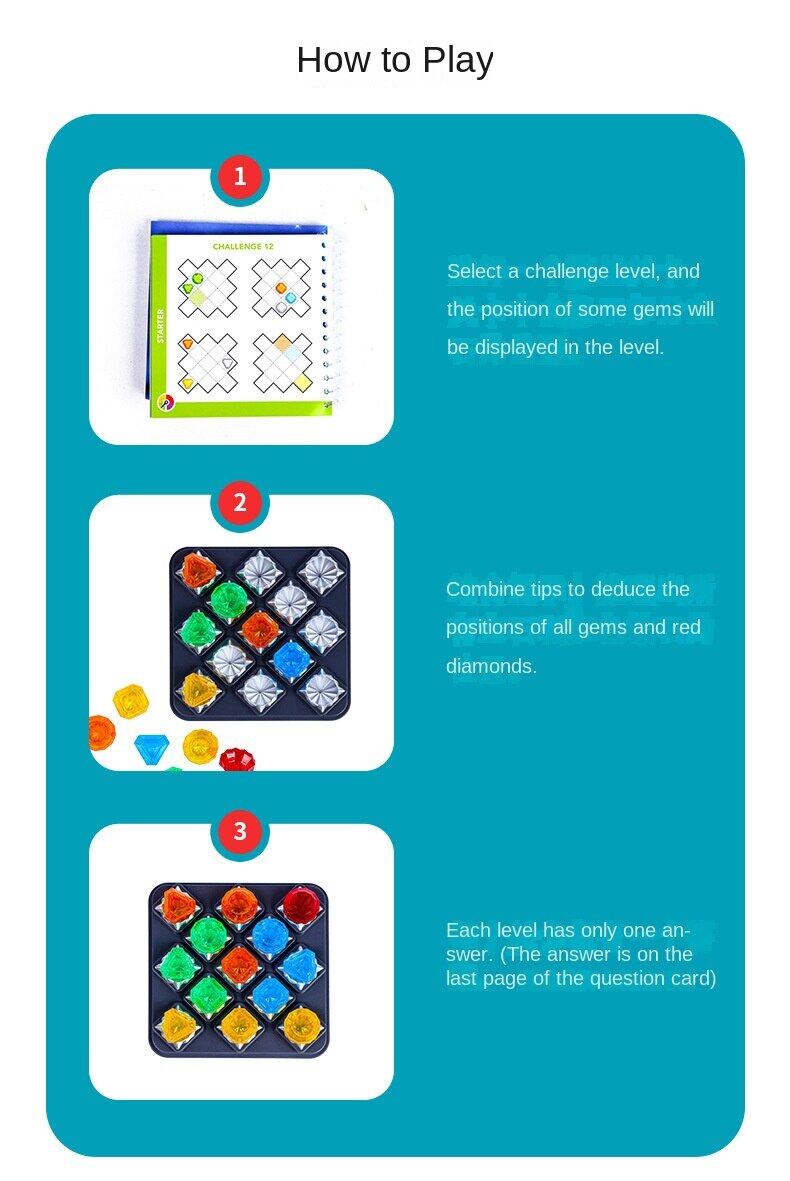 Use your deduction skill to place the jewels and find the location of the red diamond! Fun & Educational Toys: Diamond Quest includes 80 challenges from easy to expert. (with English graphic instructions)