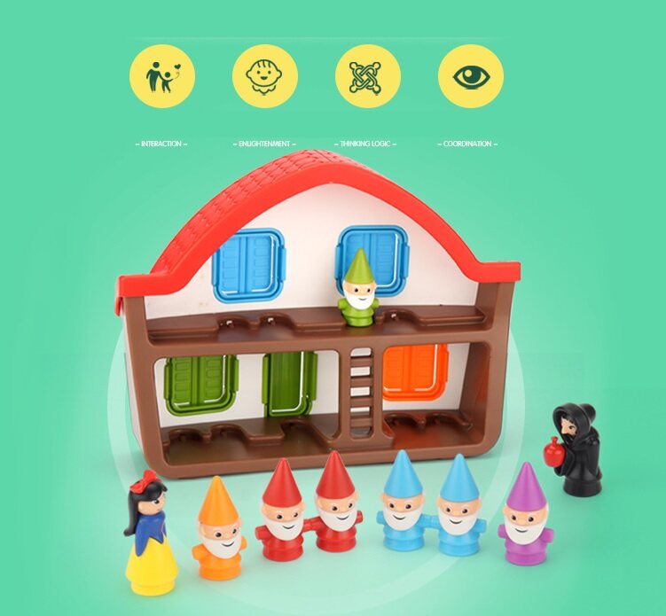 The object of the game is to correctly place Snow White, the Seven Dwarfs and the Evil Queen inside the 3D House based on a series of rules and clues in each challenge. Solving Snow White challenges helps develop early deductive reasoning skills.