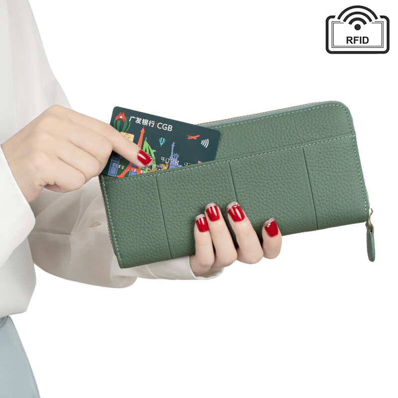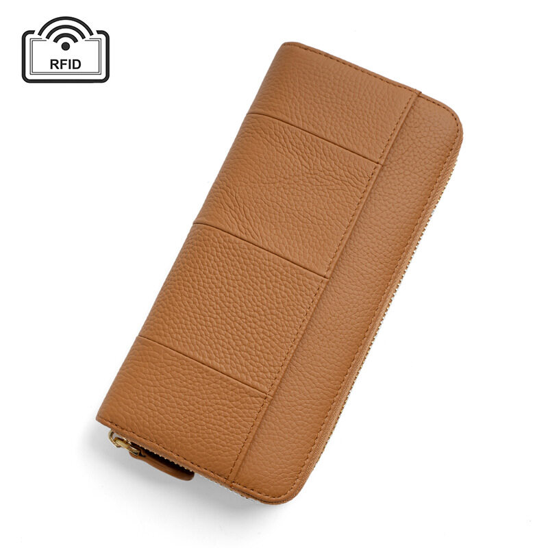 Royal Bagger New RFID Zipper Long Wallets for Women Genuine Cow Leather Large Capasity Ladies Clutch Bag Multifunction Casual Girl Card Holders Coin Purse Phone Bag