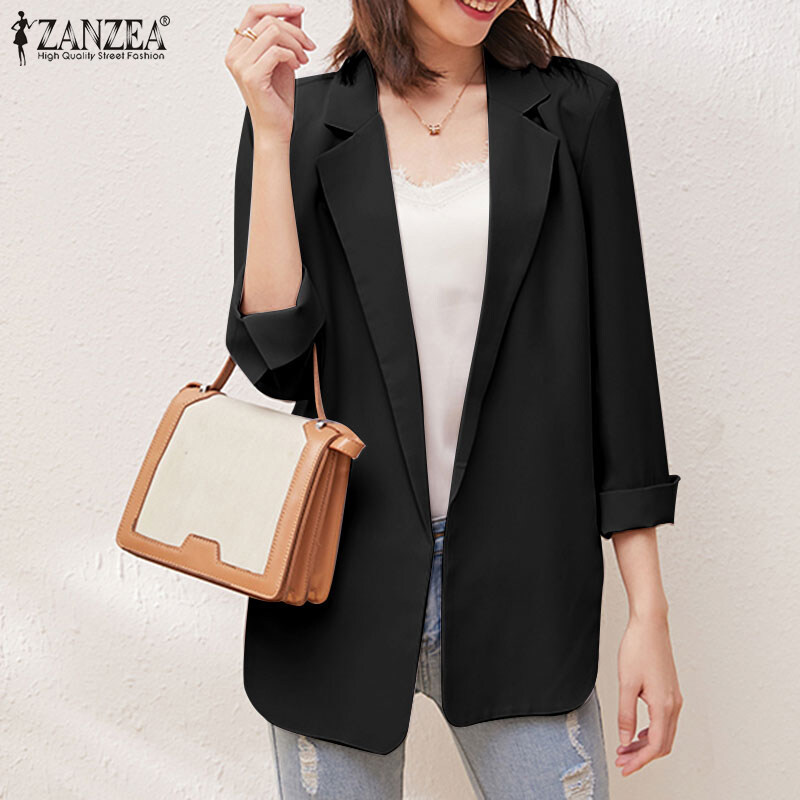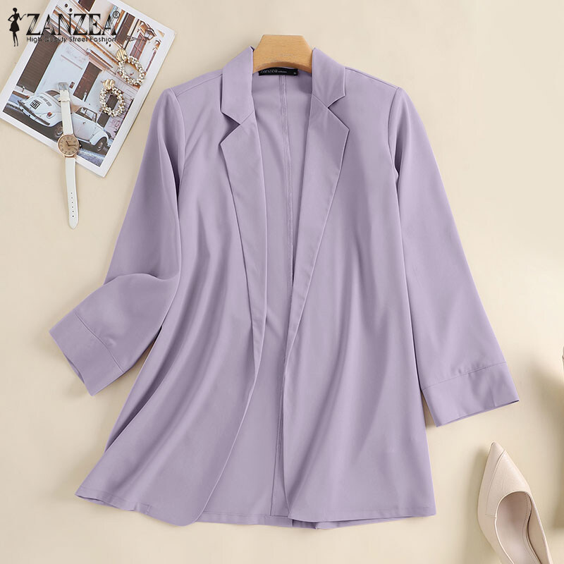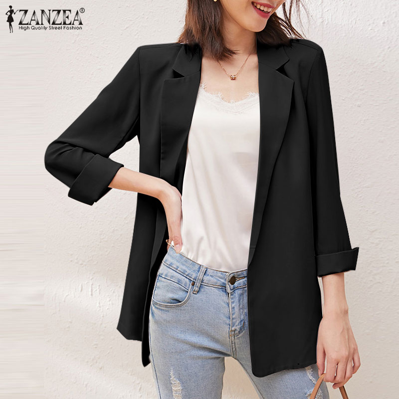 ZANZEA Korean Style Women Long Sleeve Workwear Casual Simple Lapel Blazer Suits Coats Jacket #11