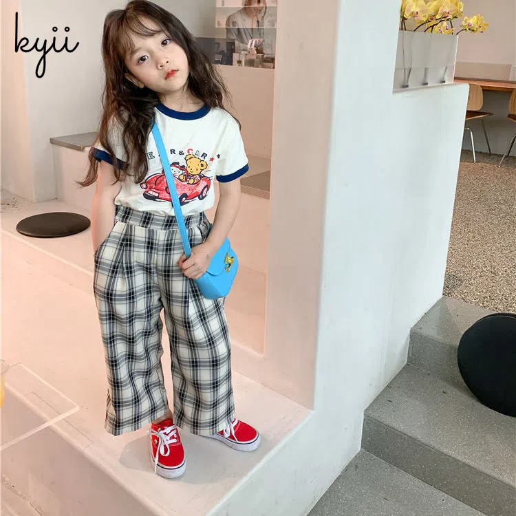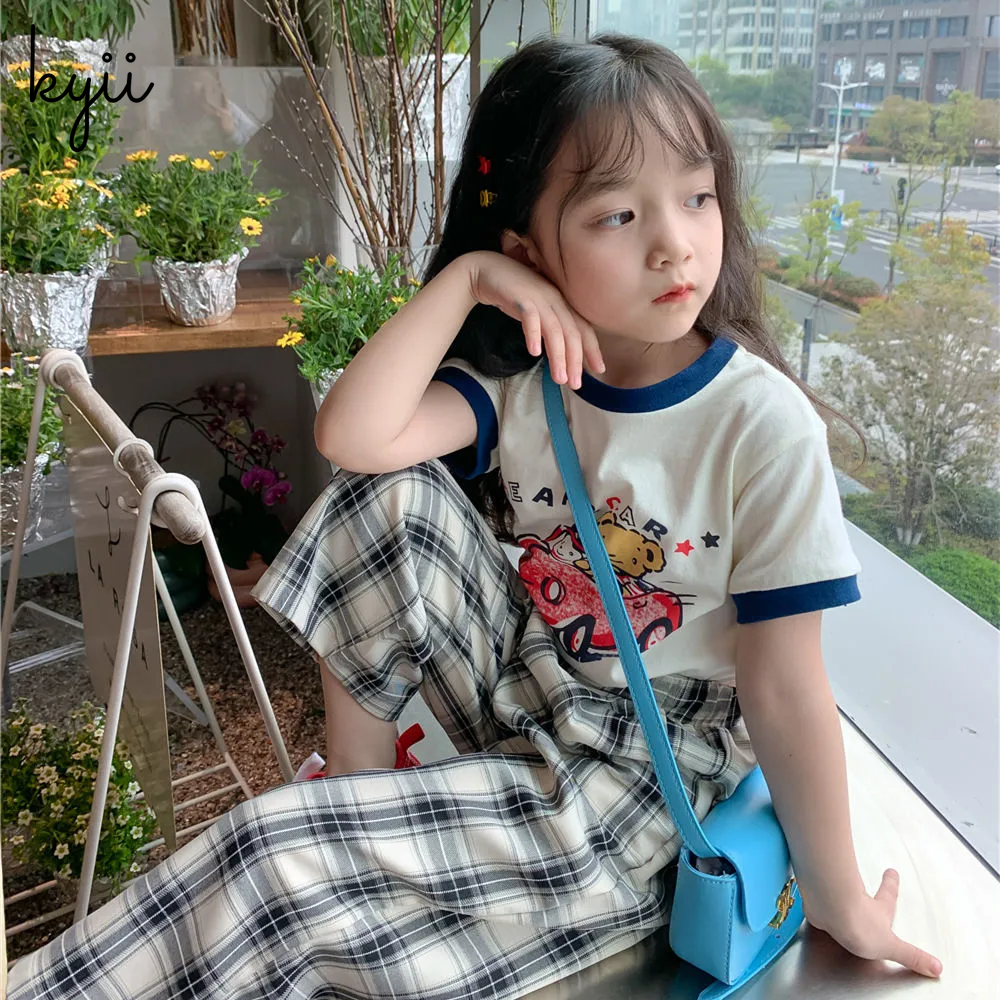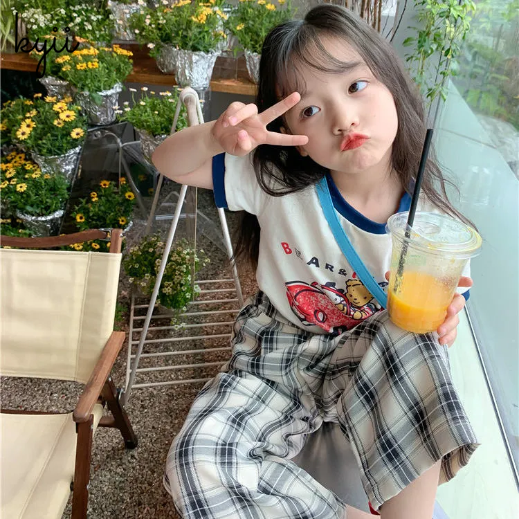 KYII Girl Summer children Korean Round-neck shirt Versatile short sleeve Top kyii0039