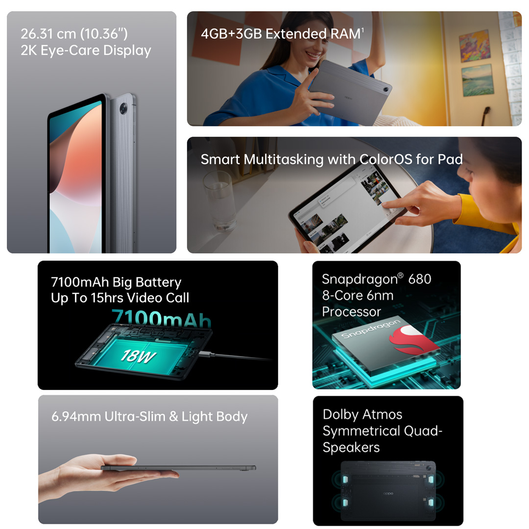 OPPO Pad Air / Ultra-Slim Body / 10.36" 2K Screen / Quad-Speaker Symmetrical Stereo / 7100mAh Battery 18W Fast Charge