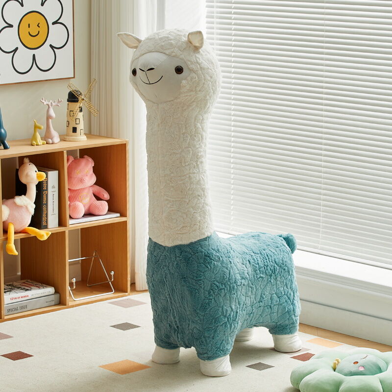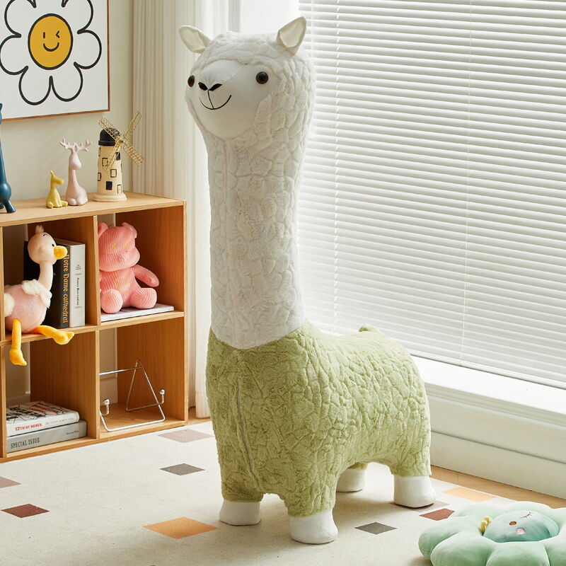 Beiou Home Creative Alpaca Animal Stool Cartoon Plush Shoe Changing Stool Casual Children Sofa Stool Living Room Decoration