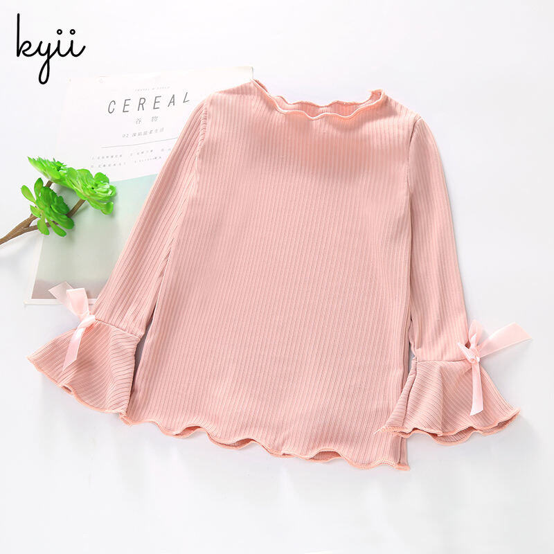 KYII Girls Long Sleeve summer children Cotton Korean Round-neck Top kyii0195