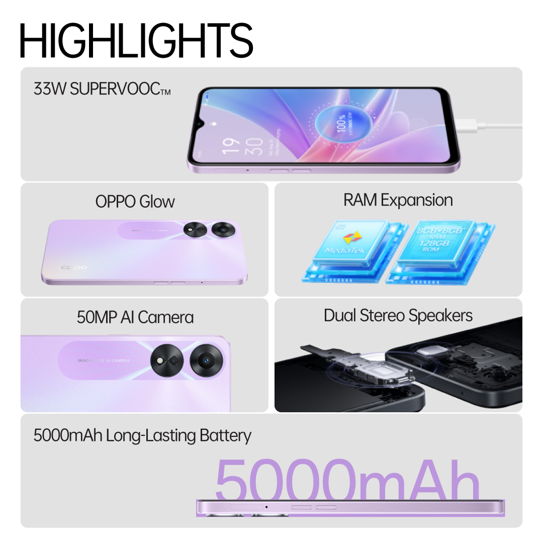 Never worry about running out of power with 33W SUPERVOOC™¹. Complete battery protection makes charging your phone safer than ever. The high capacity 5000mAh battery³ is a true powerhouse. Super Power Saving Mode and Super Night-time Standby Mode keep you charged all day and night.