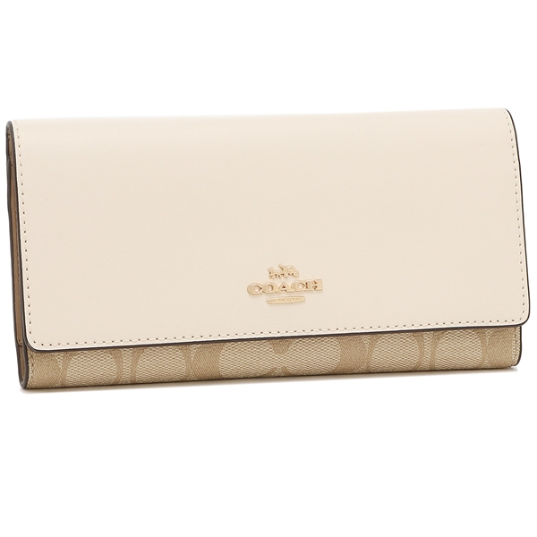Coach Wallet In Gift Box Long Wallet Slim Trifold Wallet In Signature Canvas Light Khaki Chalk Off White # C5966