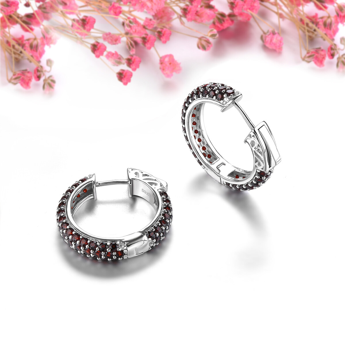 Lohaspie Jewelry Real 5.2 Carats Earring Silver 925 Original Natural Garnet Clip Earring Red Round Cut Gemstone Birthstone Garnet Earring For Women Jewelry Christmas Gift