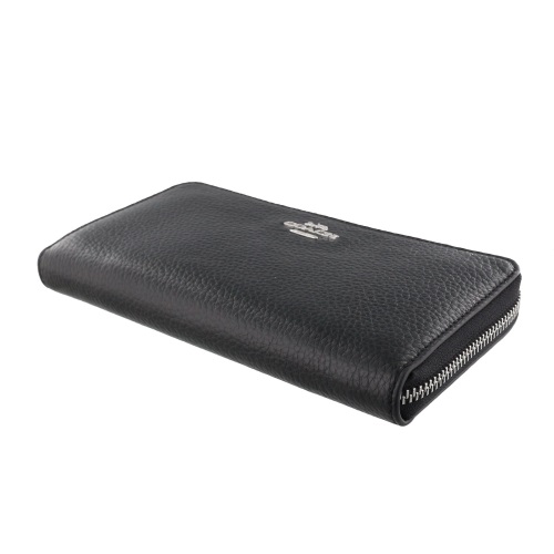 Coach Wallet In Gift Box Long Wallet Pebbled Leather Long Zip Around Wallet Black Silver # C4451