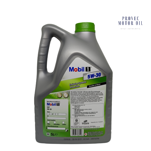 Mobil 1 ESP 5W-30 is made with a proprietary blend of leading edge components formulated to be fully compatible with the latest Diesel Particulate Filters (DPF's) and Gasoline Catalytic Converters (CAT's). Mobil 1 ESP 5W-30 has been designed to help deliver outstanding performance and protection in conjunction with fuel economy benefits. Key features and potential benefits include:
