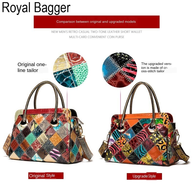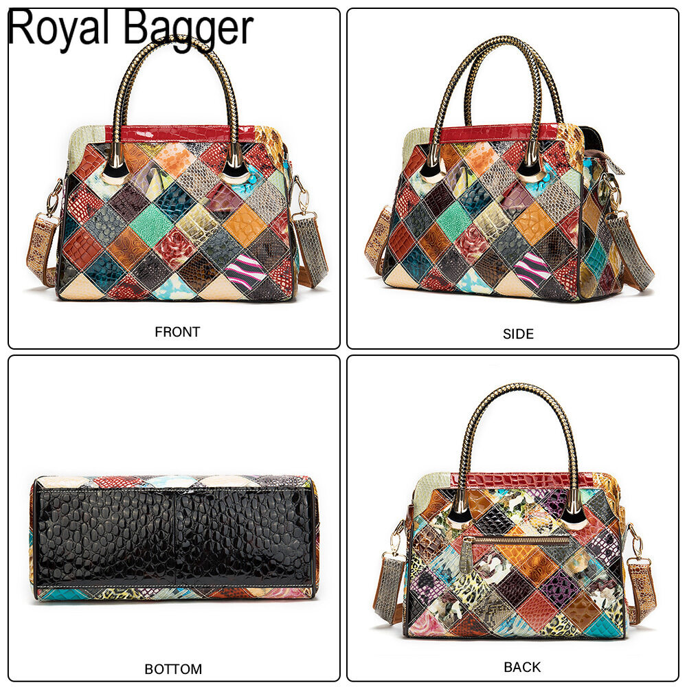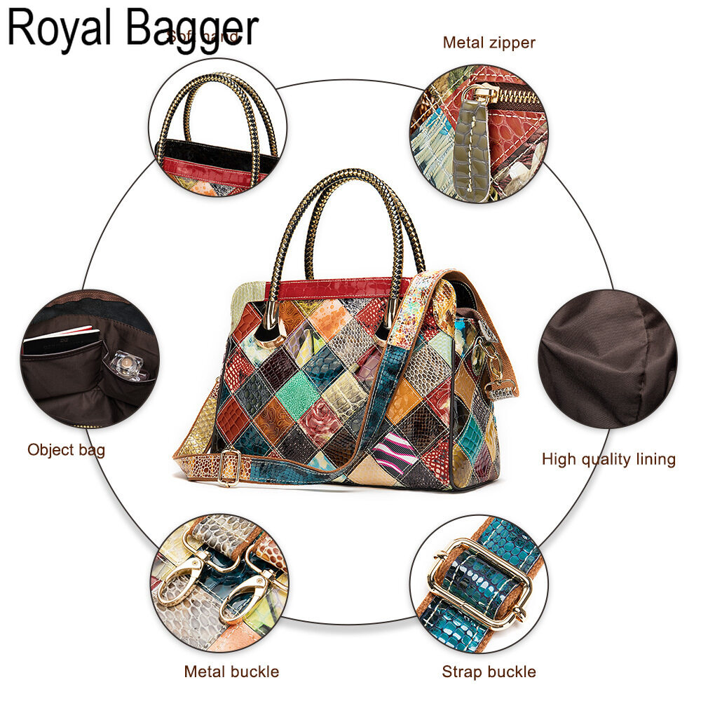 Royal Bagger New Fashion Retro Style For Women Bag Genuine Cow Leather Multifunction Top Handbag Elegant Ladies Large Capacity Europe and America Cool Sling shoulder Bag